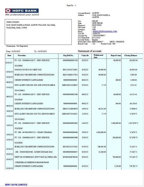 India Aditya Birla Finance Ltd fake bank statement, 3 pages